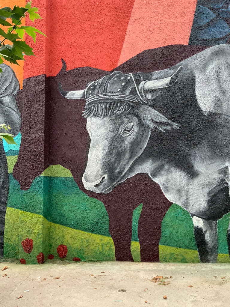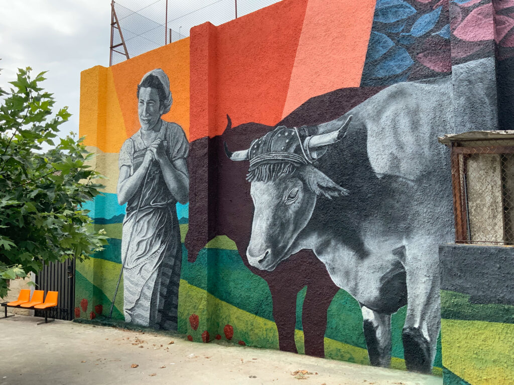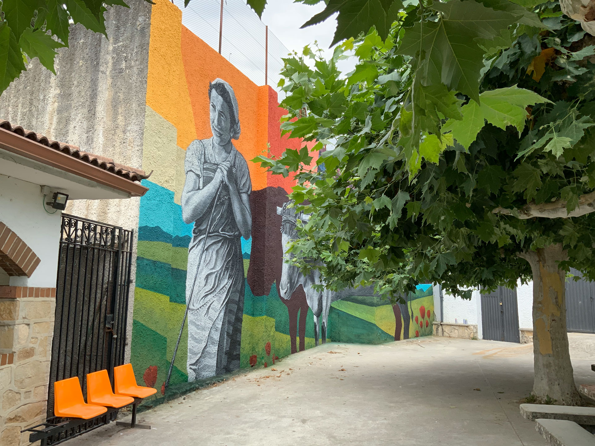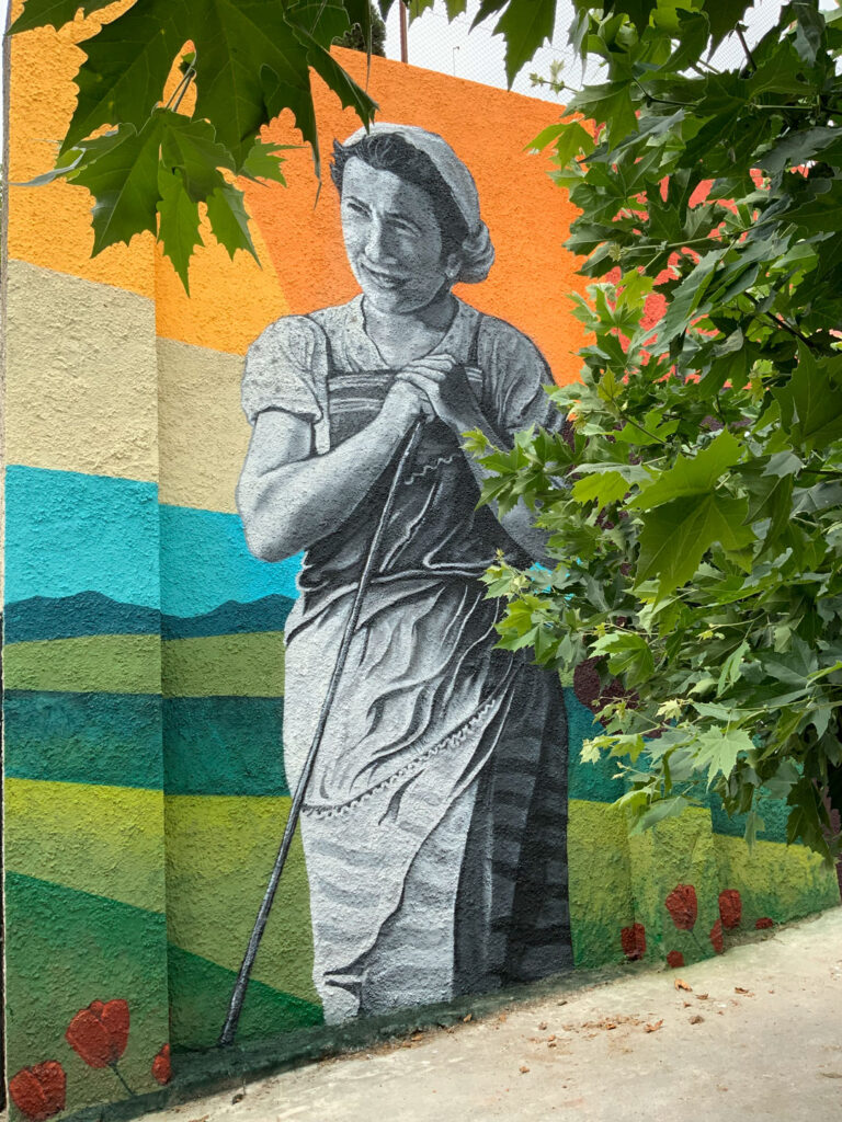 Izurdiagako frontoian margotutako horma irudia, Nafarroan. Irudiaren oinarri 1960 urtean Nicolás Ardanaz argazkilariak ateratako argazki bat da. Argazkia Sarasan atera zen, Izurdiagatik hurbil eta protagonistak Basilia Zabalza du izena. Bizitzaren kasualitateak bueltan, pertsona hau ezagutu ahal izan genuen eta horma irudia ikustera gonbidatu genuen.