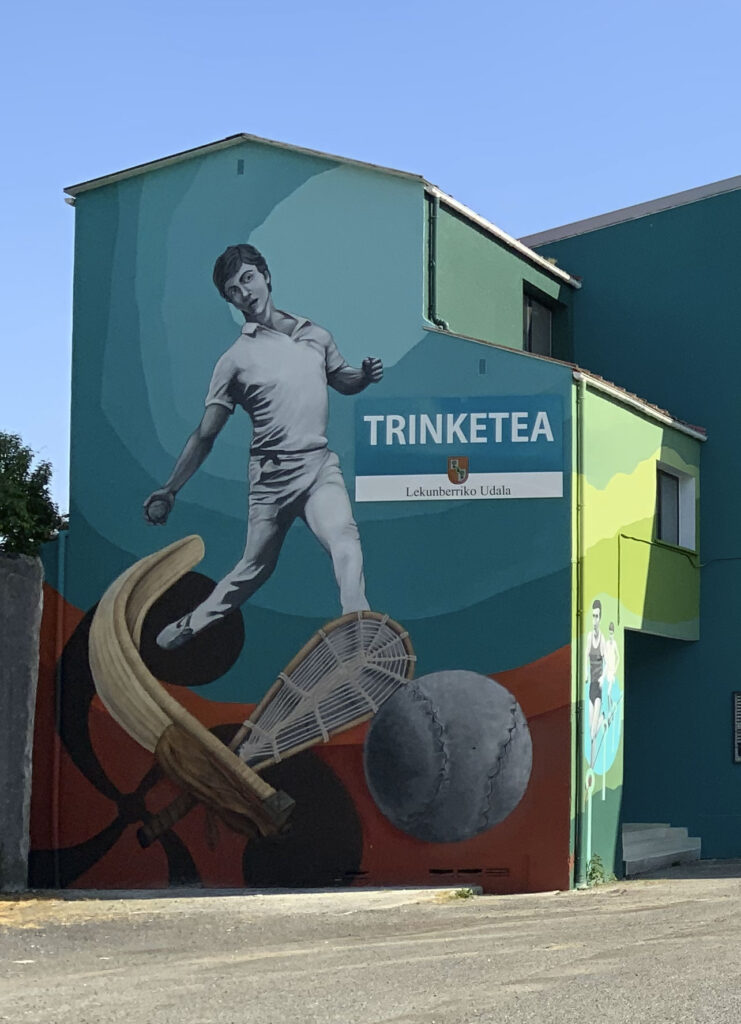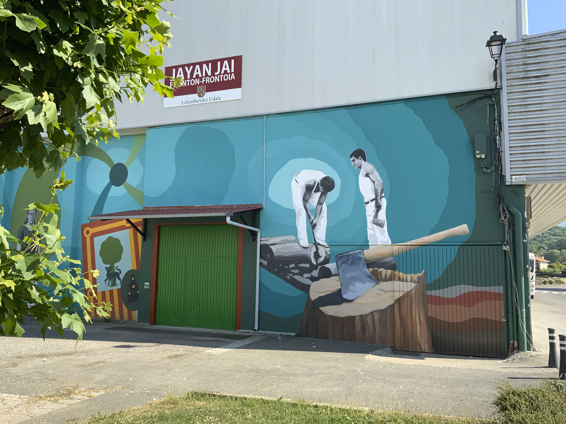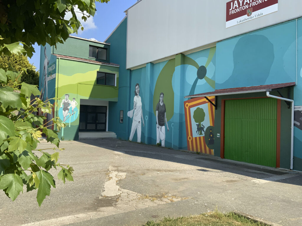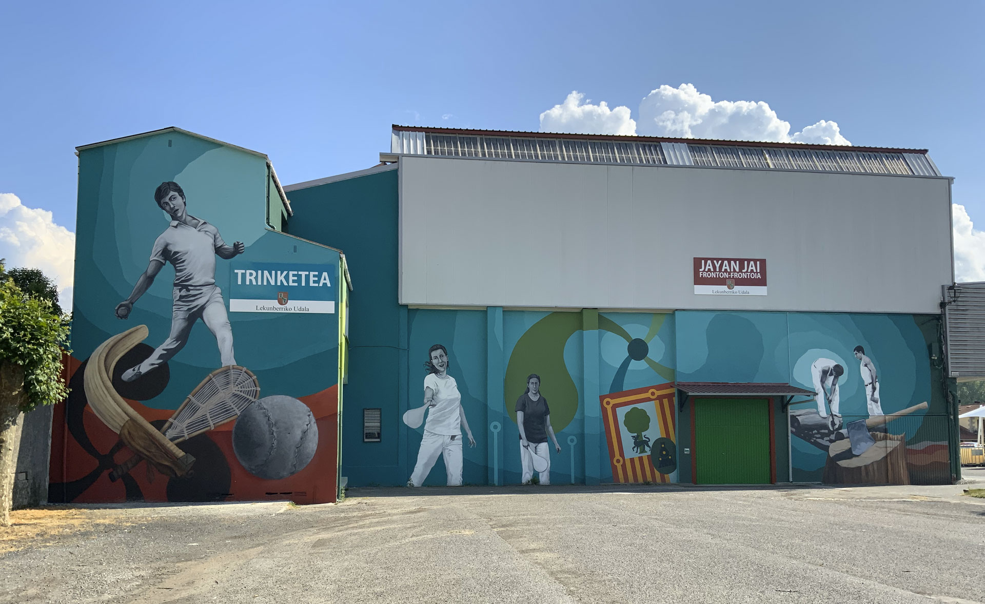 Aintzinean, gune hau herriko plaza zen eta “anilloa” bezala ezagutzen zen zirkulo bat zegoen korrikalari lasterketak egiteko. Herri kirolak, aizkolariak, korrikalariak eta pilota, horma irudiaren diseinurako oinarri izan dira. Berdea eta gorria nagusi izan dira, Lekunberriko kolore adierazgarriak.